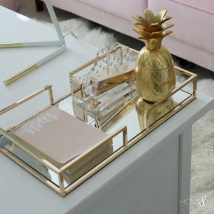 I knew I wanted velvet and when I saw this beauty at @home, I was blown away. The color was perfect, and I was able to find art that brought it together with a soft pink. I had the gold stuff from my out of home office, and I still like it, so I added gold accents.